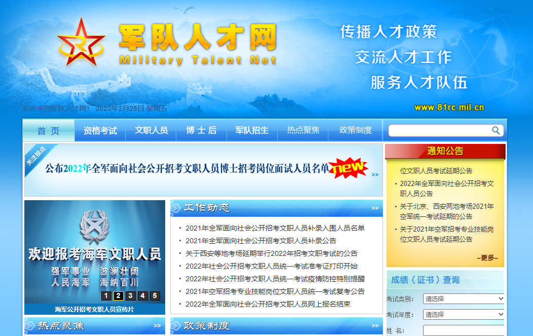 公布2022年全军面向社会公开招考文职人员博士招考岗位面试人员名单已出,共有4795人进面