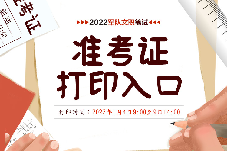 (三)统一考试。报考人员可于2022年1月4日9:00至9日14:00,通过军队人才网打印本人准考证,凭准考证和居民身份证在指定的时间和地点参加全军统一组织的考试。